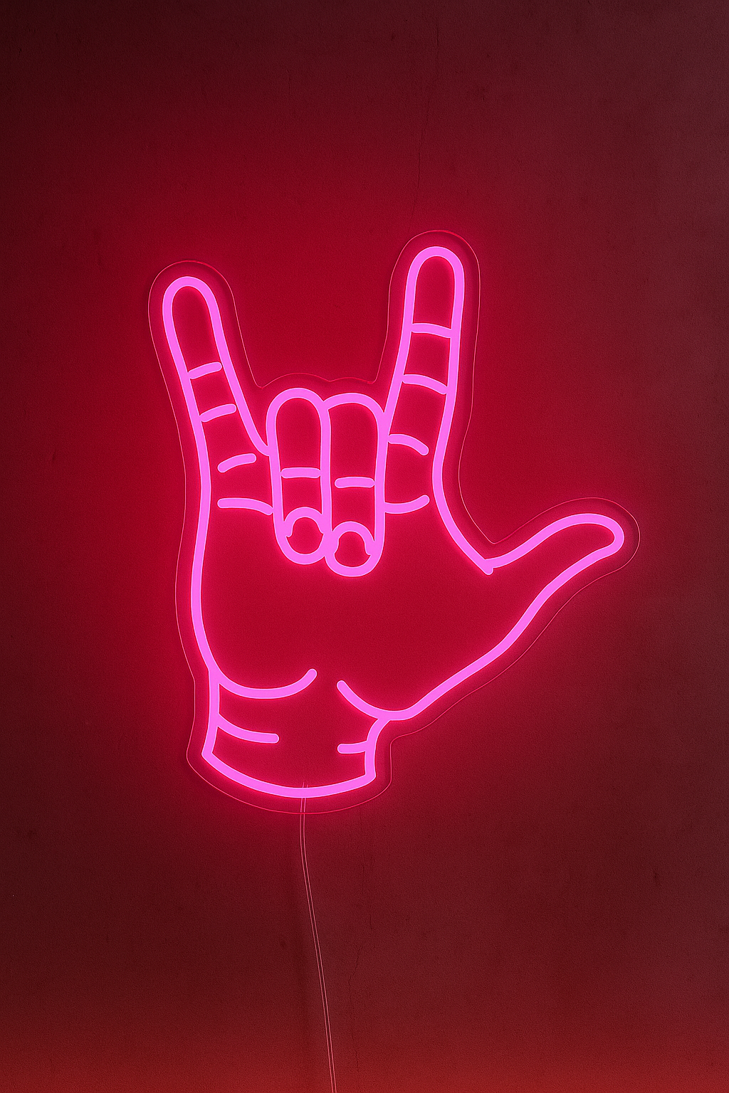 Skapa en riktig rockkänsla i ditt rum med vår 'Love Hand' led neonskylt. Detta ikoniska och unika designade skylt tillför en cool dimension till din inredning. Perfekt för musikälskare eller de som söker en unik atmosfär. Färgen på neonskylten kan anpassas för att matcha din personliga stil – ett måste för den verkliga rockentusiasten.